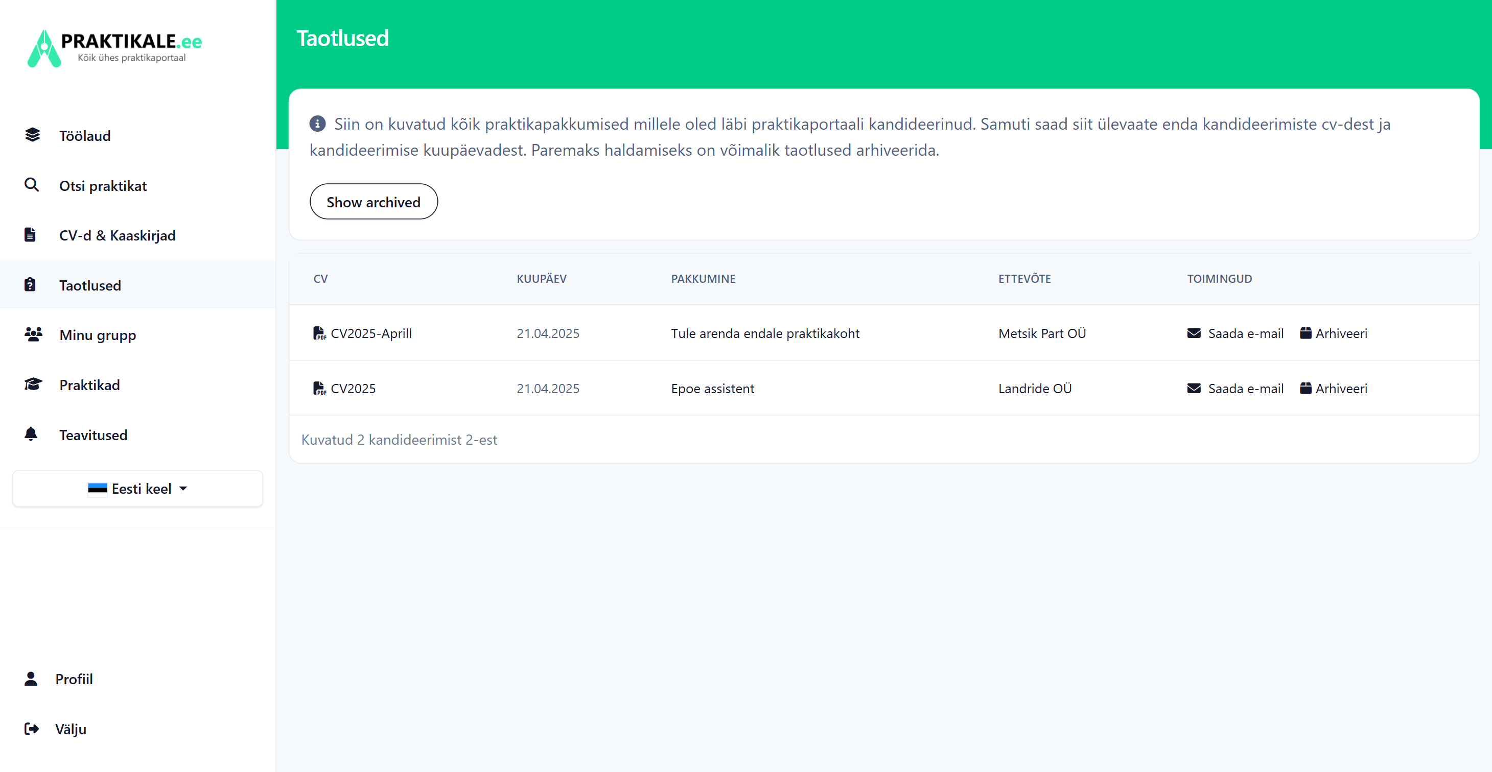 Halda hõlpsasti oma praktikataotlusi ja allkirjasta lepingud otse meie platvormi kaudu.