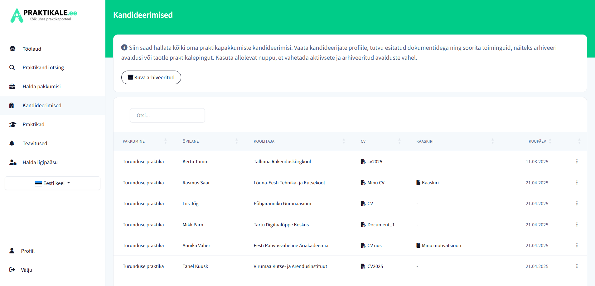 Halda oma pakkumisi, kandidaate, juhendajaid, lepinguid ja kogu praktikaprotsessi nüüd mugavalt ühes kohas ja tasuta.