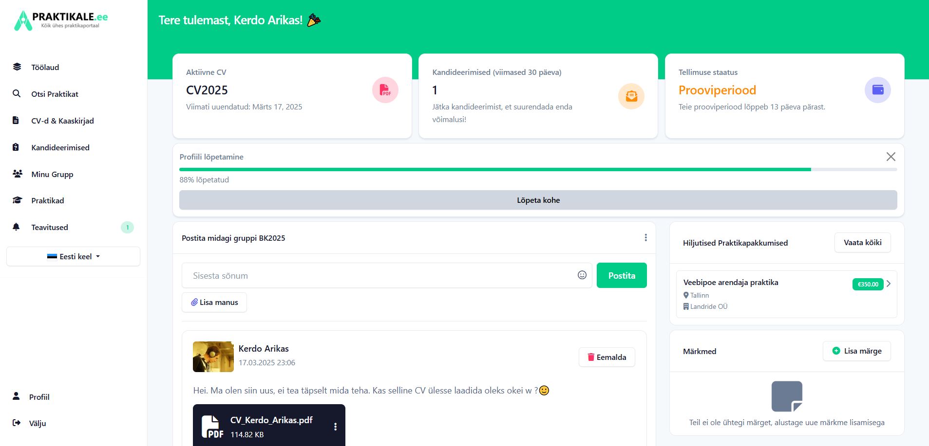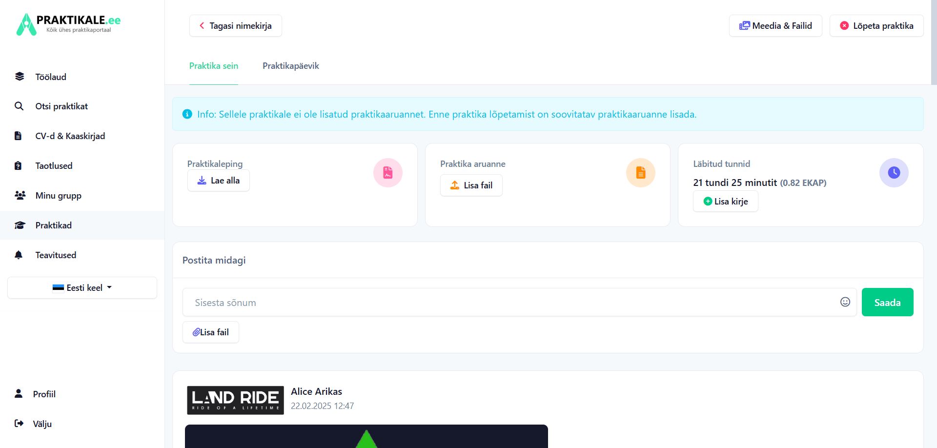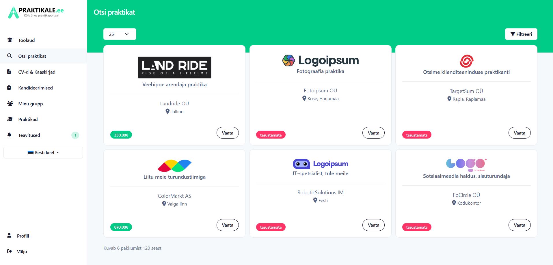 Alusta oma praktikateekonda meiega, saades ligipääsu laiale praktikapakkumiste valikule ja funktsioonidele, mis aitavad sul edukas olla.