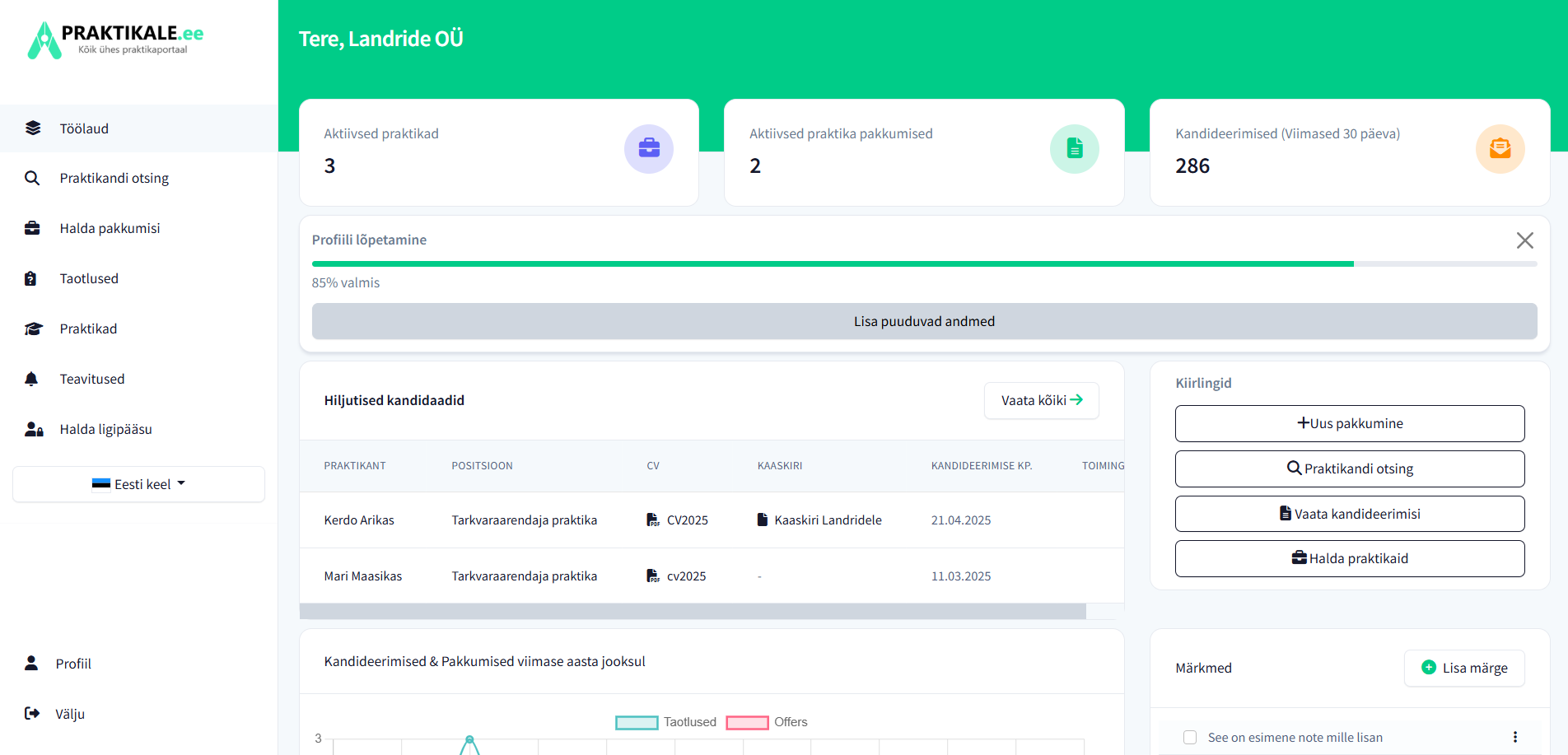 Halda oma pakkumisi, kandidaate, juhendajaid, lepinguid ja kogu praktikaprotsessi nüüd mugavalt ühes kohas ja tasuta.